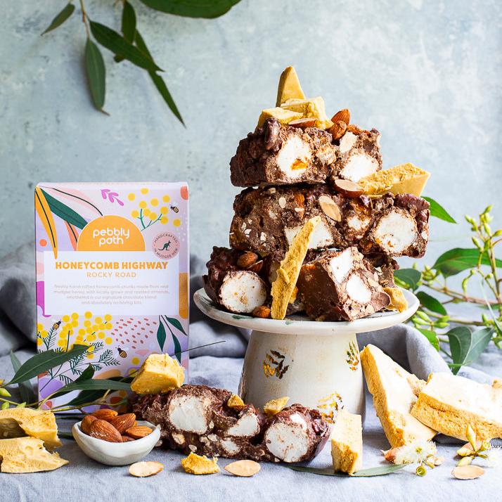 Omg, I looooove Pebbly Pathās delectable rocky road, it is the very best I have ever had! I normally grab the 8 pack option to get an assortment which is perfect for so many occasions! Whether itās when my husband and I enjoy the yummy rocky road on treat night while watching tv, or cutting up to add a sweet treat to a serving board for a bbq or sharing with the special people in our lives for gifts! We looooove Pebbly path š